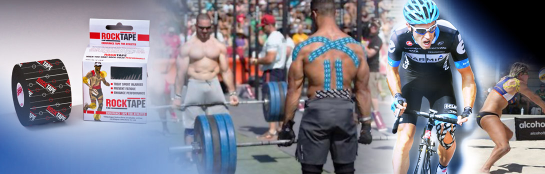 Kinesiology Taping: Rocktaping is a form of taping that permits stabilization of muscles and joints during injury recovery. Rocktape stretches in one direction and not the other creating a bio-mechanical lifting mechanism that lifts the skin away from the soft tissue underneath, which allows more blood to move into an injured area to accelerate healing and recovery. It significantly reduces pain, improves lymphatic drainage, increases circulation, and promotes healing while restoring muscular strength.